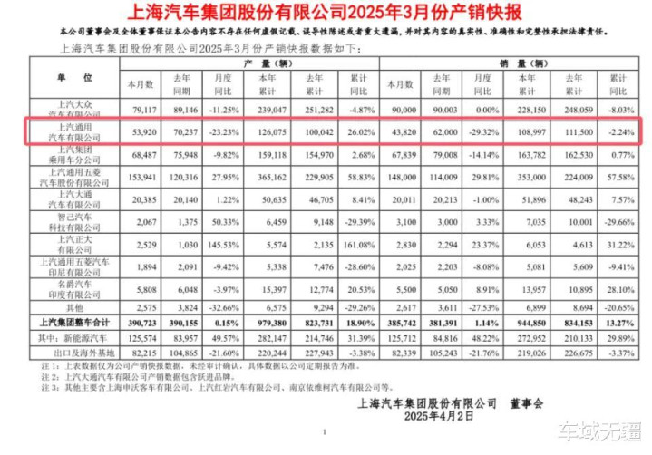 上汽集团3月份销售新车385742辆,同比增长1.1%。其中,上汽乘用车销量67839辆,同比下降14%;智己汽车销量3100辆,同比持平;名爵汽车印度销量5500辆,同比增长9%。